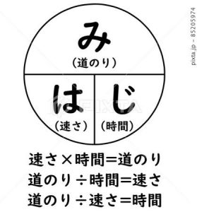 ・時速○kmで進むバスは、○時間後には何m進んでいるか?